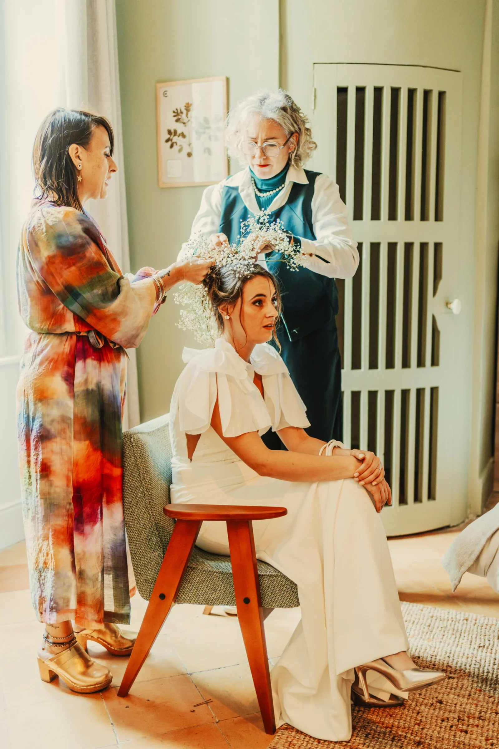 • Mise en beauté (esthéticienne et coiffure) pour la mariée et ses demoiselles d’honneurs, dans la Chambre des marié.e.s ou la Suite Camboyer
